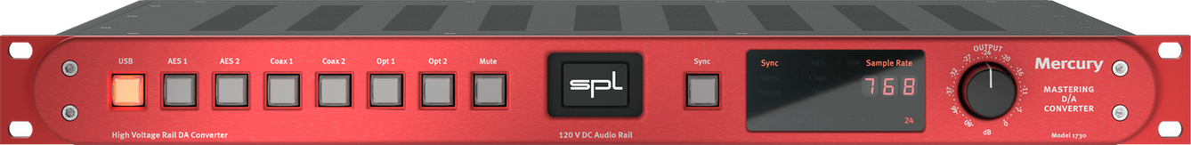 Mercuryは120Vテクノロジーを初めて採用したマスタリング用DAコンバーターです。入力信号のデジタルクロックやワードクロックと同期が可能な合計7種類ものデジタル入力端子を装備しています。可変アウトプットはモニターコントローラーとしてMercuryを使用することを可能とします。